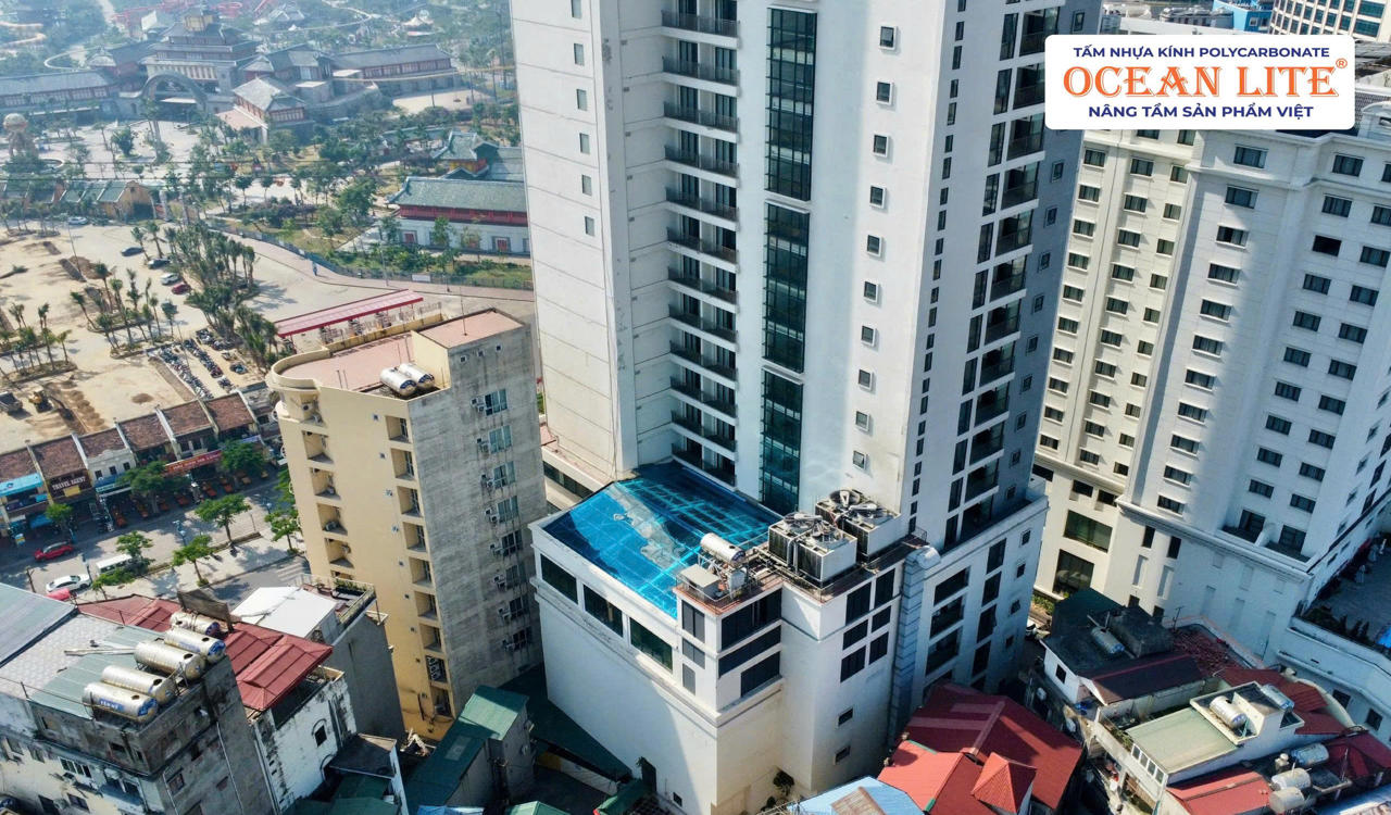 Không chỉ đáp ứng các tiêu chí kỹ thuật, hệ mái bể bơi còn mang giá trị thẩm mỹ cao. Bề mặt sáng trong của polycarbonate Ocean Lite tạo hiệu ứng ánh sáng nổi bật, đồng bộ với kiến trúc sang trọng của khách sạn. Đây không chỉ là một hạng mục công trình, mà còn là yếu tố giúp Khách sạn Soleil – Hạ Long khẳng định tiêu chuẩn nghỉ dưỡng đẳng cấp quốc tế.