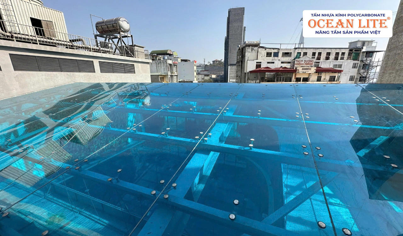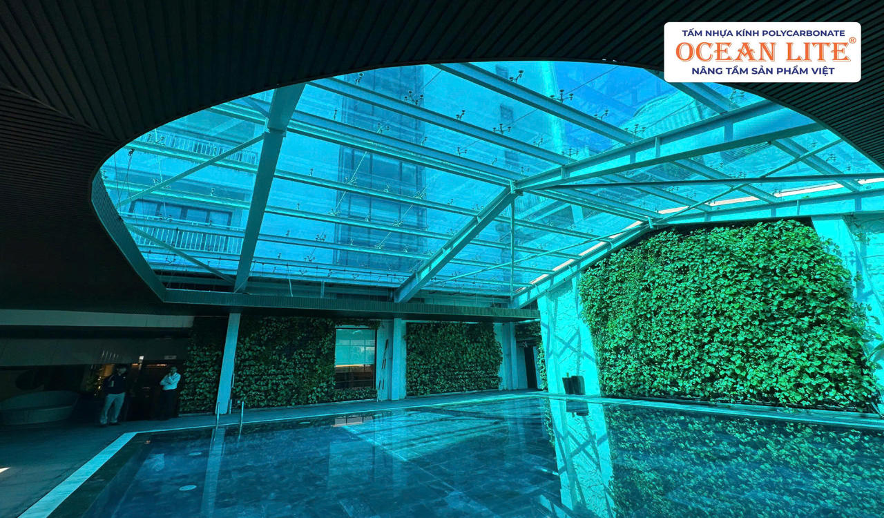 Kết hợp với tấm polycarbonate Ocean Lite 12mm, mái bể bơi vừa có độ bền vượt trội gấp nhiều lần so với kính thường, vừa chống tia UV hiệu quả, bảo vệ sức khỏe người sử dụng. Đặc biệt, vật liệu nhẹ giúp tối ưu thi công và giảm chi phí bảo trì trong quá trình vận hành.
