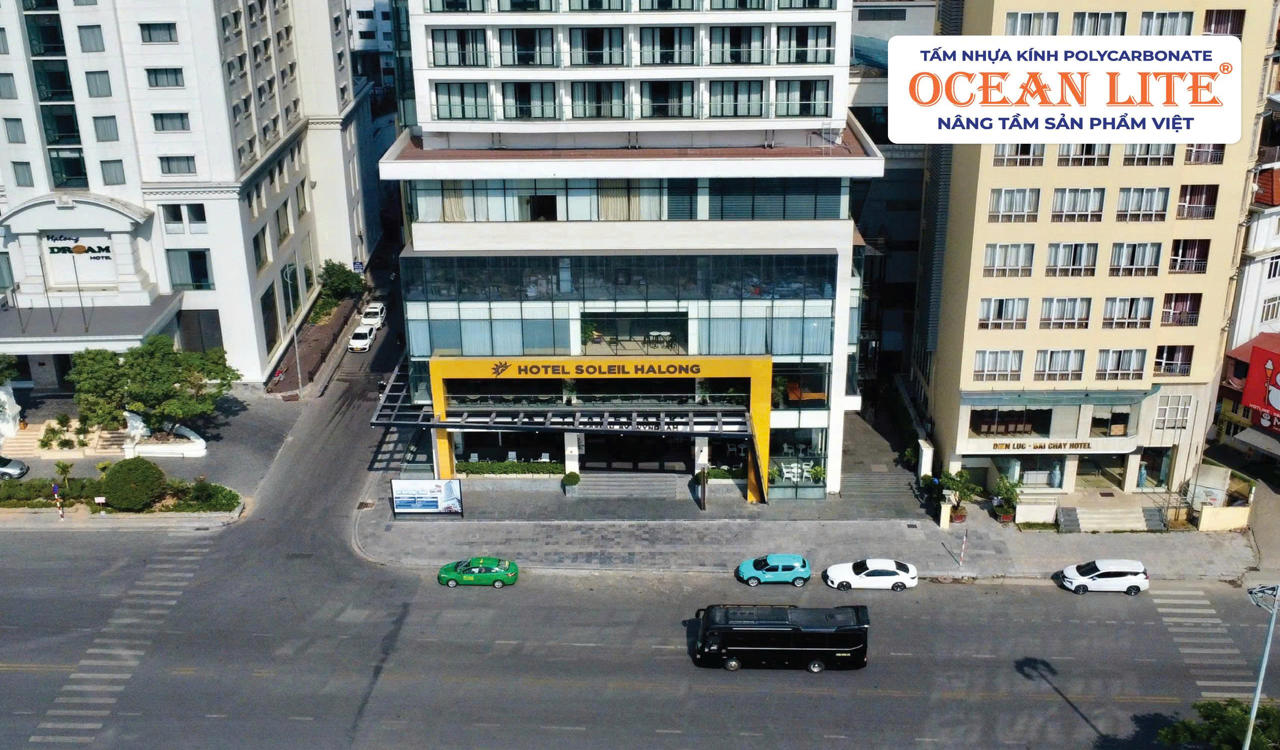 Tọa lạc tại trung tâm du lịch Bãi Cháy – Hạ Long, Khách sạn Sol là điểm đến nghỉ dưỡng cao cấp được thiết kế theo phong cách hiện đại, sang trọng. Trong tổng thể kiến trúc đó, hạng mục mái che bể bơi được hoàn thiện bằng giải pháp chân nhện thế hệ mới kết hợp tấm nhựa polycarbonate Ocean Lite 12mm, tạo nên điểm nhấn vừa tinh tế vừa bền vững.