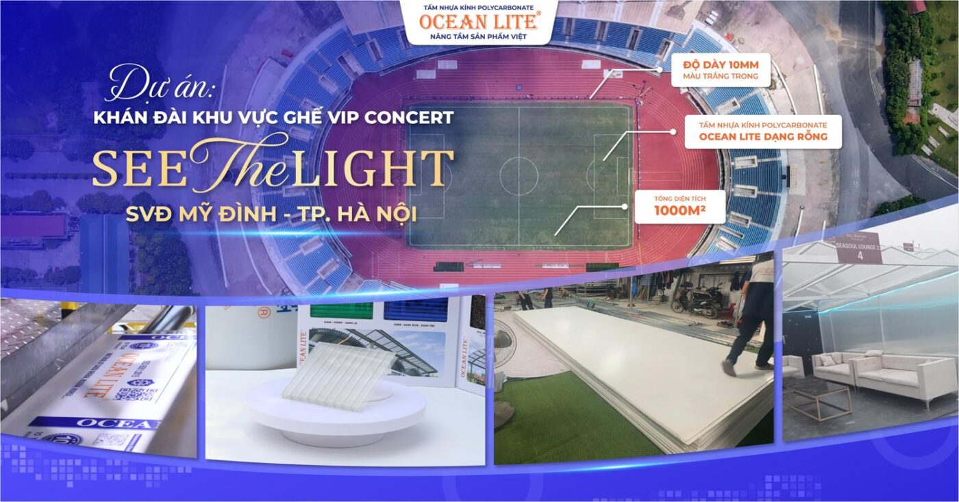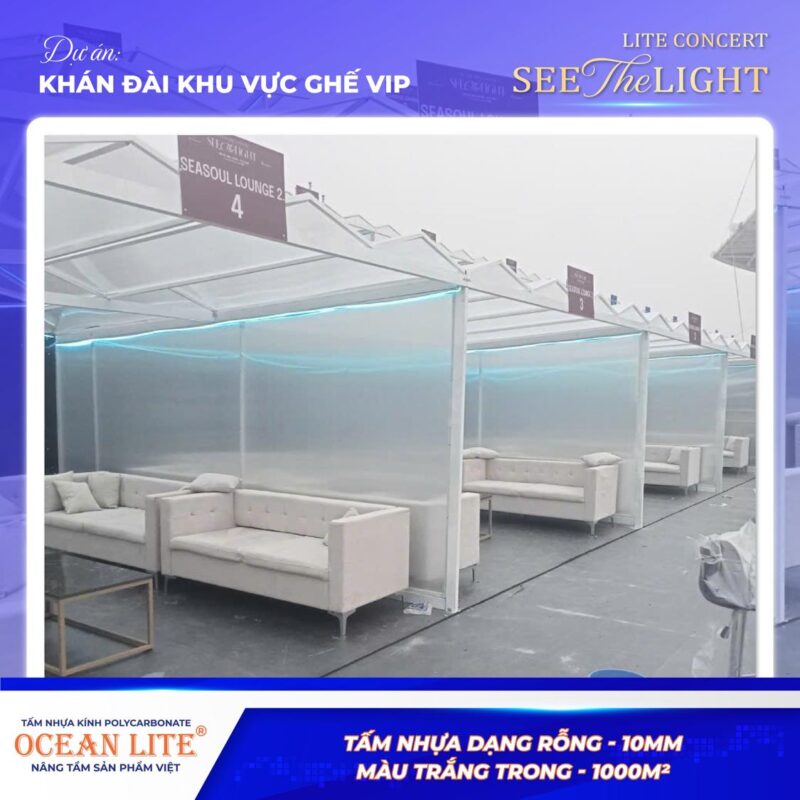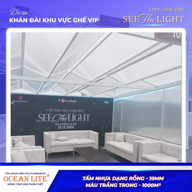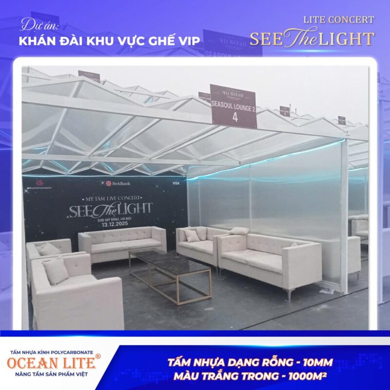 Việc lựa chọn tấm Polycarbonate rỗng Ocean Lite 10mm không chỉ đáp ứng yêu cầu kỹ thuật khắt khe của một sự kiện âm nhạc quy mô lớn, mà còn đảm bảo yếu tố thẩm mỹ và trải nghiệm cao cấp dành cho khu vực VIP.
