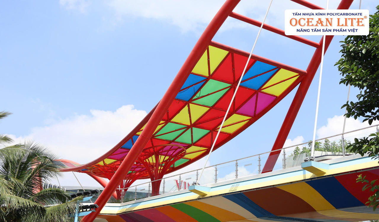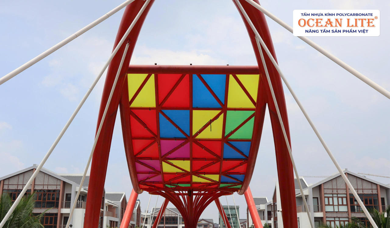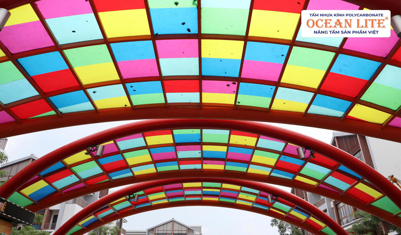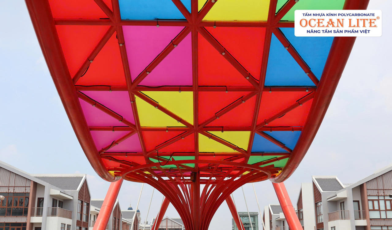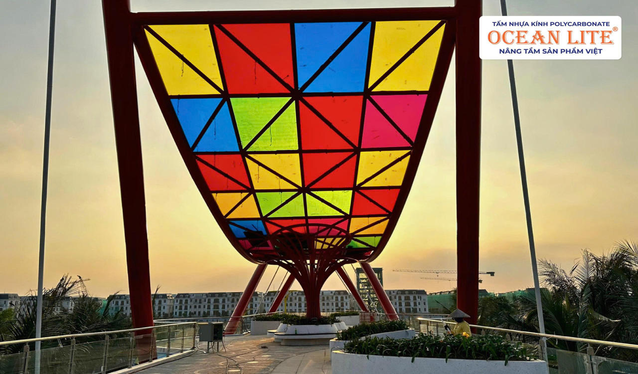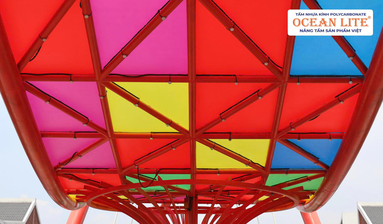 Trong dự án này, tấm nhựa Polycarbonate Ocean Lite không chỉ đơn thuần là vật liệu xây dựng, mà giống như một “người nghệ sĩ” góp phần định hình không gian. Với khả năng truyền sáng dịu nhẹ, Ocean Lite mang ánh sáng tự nhiên len lỏi xuống từng khoảng không, vừa tạo sự thông thoáng vừa giữ được độ che phủ vững chắc. Độ bền dẻo cùng khả năng uốn cong linh hoạt giúp các kiến trúc sư thỏa sức sáng tạo nên những mái che mềm mại như dòng chảy, hay những nhịp cầu cong cong gợi cảm hứng từ thiên nhiên.